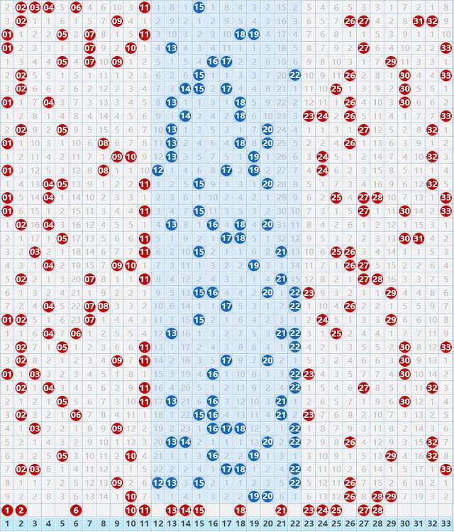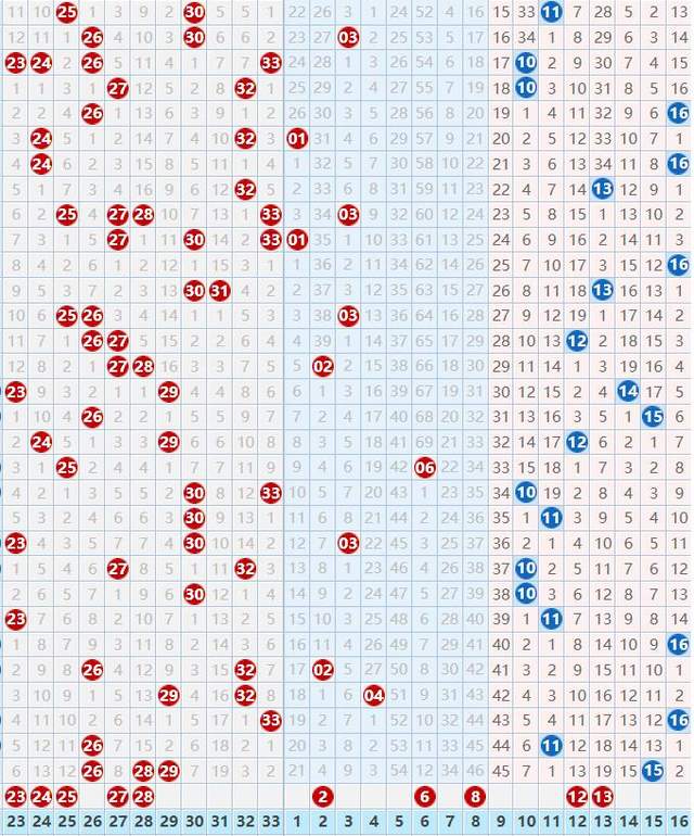 朋友们,到这里咱们的红球号码就分析完了,下面咱们再看看蓝球号码。