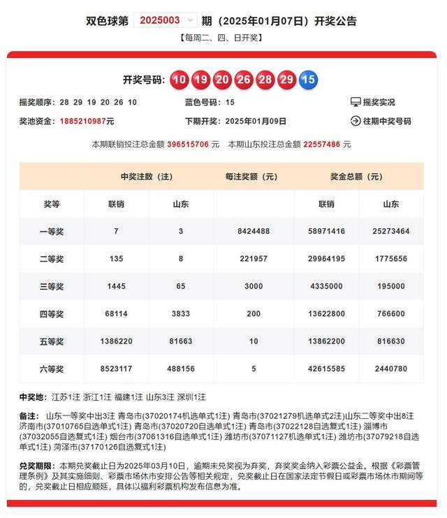 山东彩友终于可以笑一笑了,上期山东是赢家,中出了三注双色球大奖。山东中了三组大奖,很好,可是我的心中依然愤愤不平,三注一等奖都是青岛中出来的。都是青岛就都是青岛吧,但三注一等奖都是机选单式中出。这就有点令人回味无穷了。