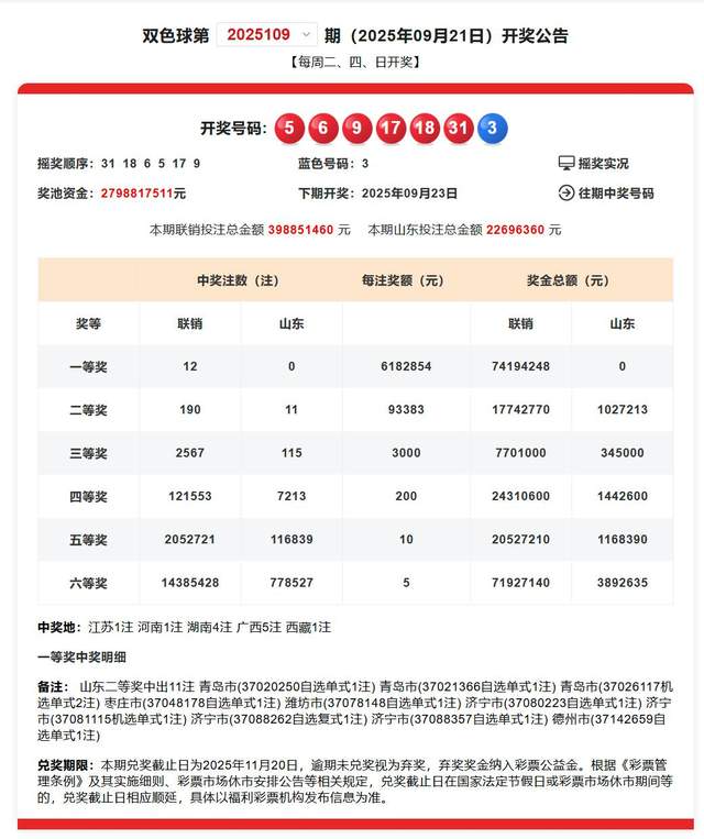 今天是2025年9月23日,星期二。今天是2025年第110期福彩双色球游戏开奖的日子。
