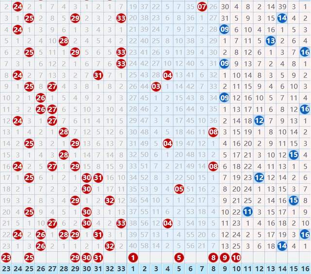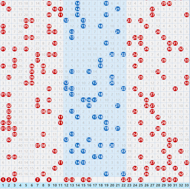 朋友们,到这里咱们的红球号码就分析完了,下面咱们再看看蓝球号码。