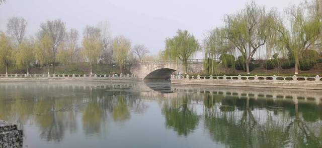 天空虽然还不是特别的蓝,但是没有了阴霾和乌云,也是令人神清气爽。太阳出来了,运河边的景色比较清新,可是,运河的水面上,竟然蒸腾着雾气,肉眼就能看到水面上的雾气在飘荡。在这个季节,还能看到这种景象。真的有点不可思议了。