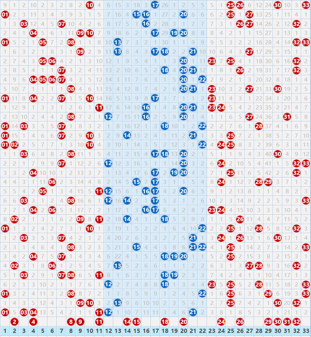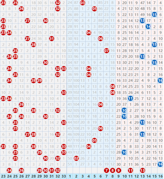 专业玩彩双色球红球: 龙头:01 02 03。 凤尾:30 31 32。 连号:08 09、14 15、29 30 31 32。 直落号:04 11。 隔期号:09 30 32。 邻码斜连码:02 20。 冷号:14 31。 专业玩彩双色球红球综合推荐: 双色球红球15码:02 04 08 09 11 14 15 18 20 24 26 29 30 31 32。 朋友们,到这里咱们的红球号码就分析完了,下面咱们再看看蓝球号码。