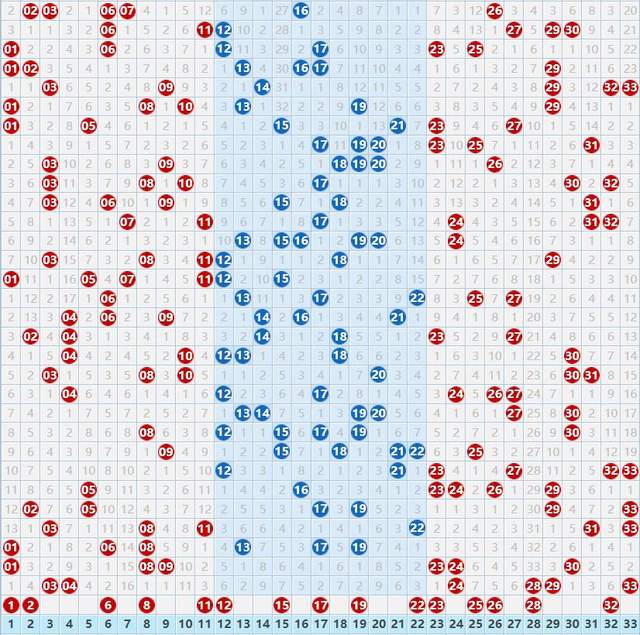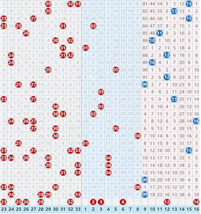 朋友们,到这里咱们的红球号码就分析完了,下面咱们再看看蓝球号码。