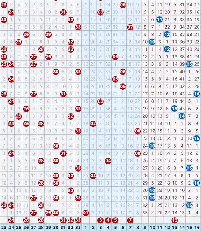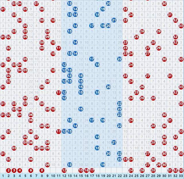 专业玩彩双色球红球: 龙头:02 03 04。 凤尾:31 32 33。 连号:02 03 04、15 16 17、31 32 33。 直落号:19 27。 隔期号:02 06 24 28。 邻码斜连码:08 12 26 28 31。 冷号:04 15 16 17 26 31。 专业玩彩双色球红球综合推荐: 双色球红球15码:02 03 04 06 08 12 15 16 17 24 26 28 31 32 33。 朋友们,到这里咱们的红球号码就分析完了,下面咱们再看看蓝球号码。