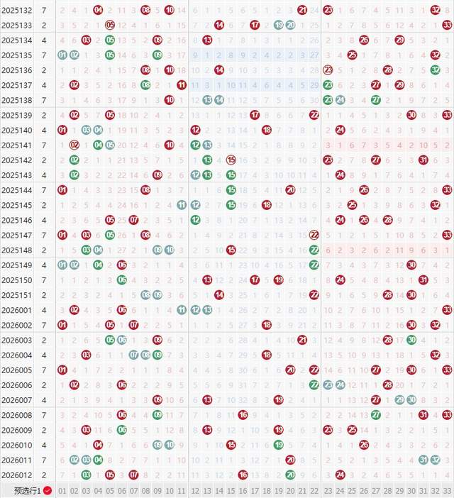 本期红球号码选号思路 一、关注隔期号码开出: 上期红球号码开出来两个直落号码,没有开出来隔期号码,今天咱们关注一下隔期号码开号。 二、关注连号开出: 上期红球号码没开连号也在情理之中,因为三连号下面,一般的时候不开连号,但是三连号下面第2期喜欢开连号,本期我们还应该关注连号开出。 三、关注同尾号码开出: 上期红球号码也没有开出来同尾号码,同尾号码消失有点不应该了,因为同尾号码是最靠谱的技术指标,几乎每期开奖号码里面都有同尾号码,本期我们再看看同尾号码开出。 我的座右铭和大家共享:生活用心,生存用脑,卓越源于专业,品质始自诚信,用心体会智慧的价值。