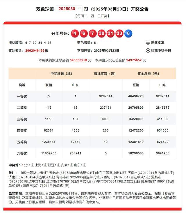 今天是2025年第031期福彩双色球游戏开奖的日子。