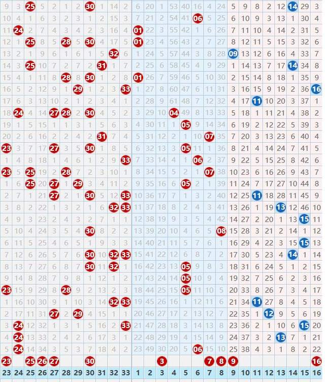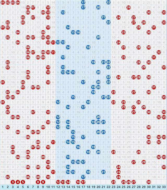 朋友们,到这里咱们的红球号码就分析完了,下面咱们再看看蓝球号码。