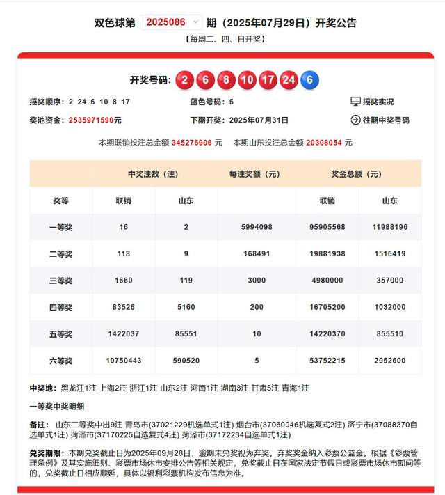 今天是2025年7月31日,星期四。明天是2025年第087期福彩双色球游戏开奖的日子。