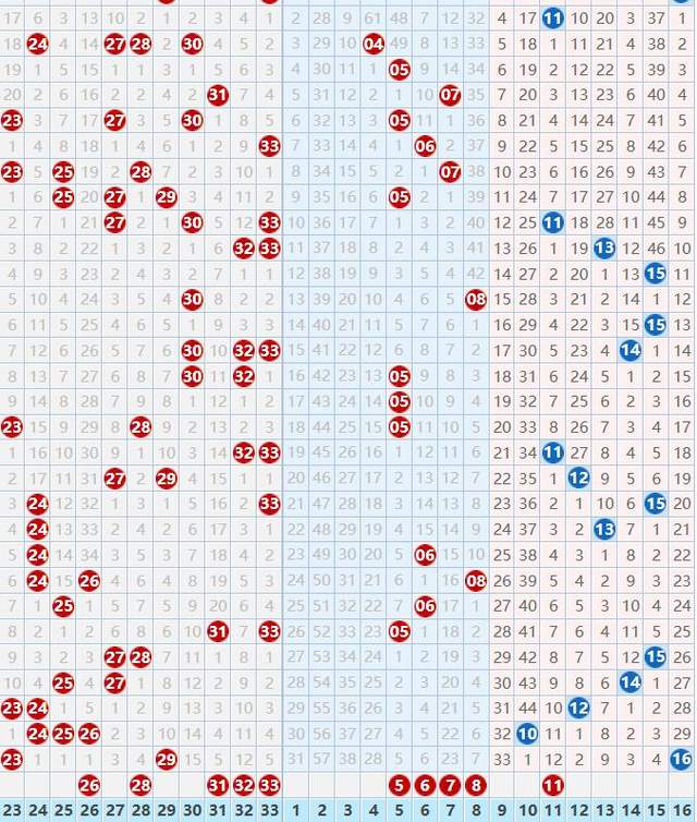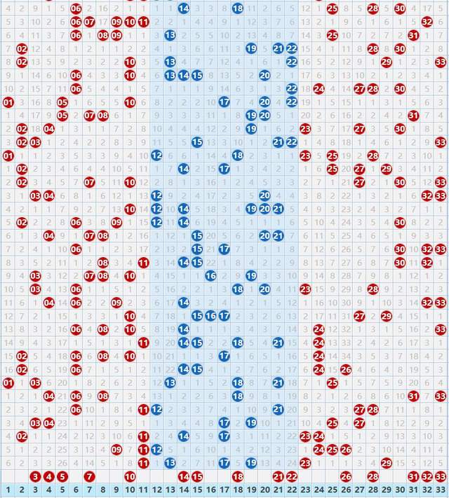 专业玩彩双色球红球: 龙头:03 04 05。 凤尾:31 32 33。 连号:03 04 05、14 15 、21 22、31 32 33。 直落号:19 23。 隔期号:12 25 26。 邻码斜连码:10 14 18 22 28。 冷号:05 07 22 32。 专业玩彩双色球红球综合推荐: 双色球红球15码:03 04 05 07 10 14 15 18 21 22 26 28 31 32 33。 朋友们,到这里咱们的红球号码就分析完了,下面咱们再看看蓝球号码。