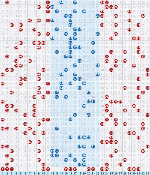 朋友们,到这里咱们的红球号码就分析完了,下面咱们再看看蓝球号码。