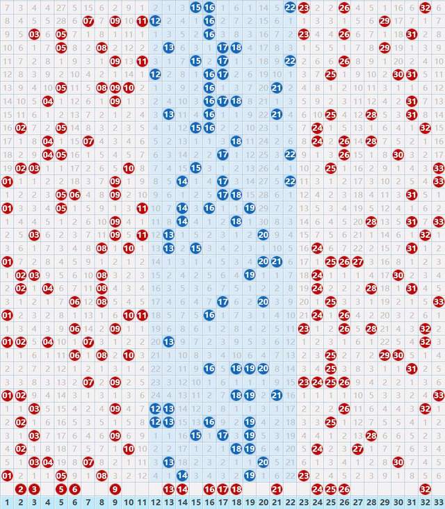 朋友们,到这里咱们的红球号码就分析完了,下面咱们再看看蓝球号码。