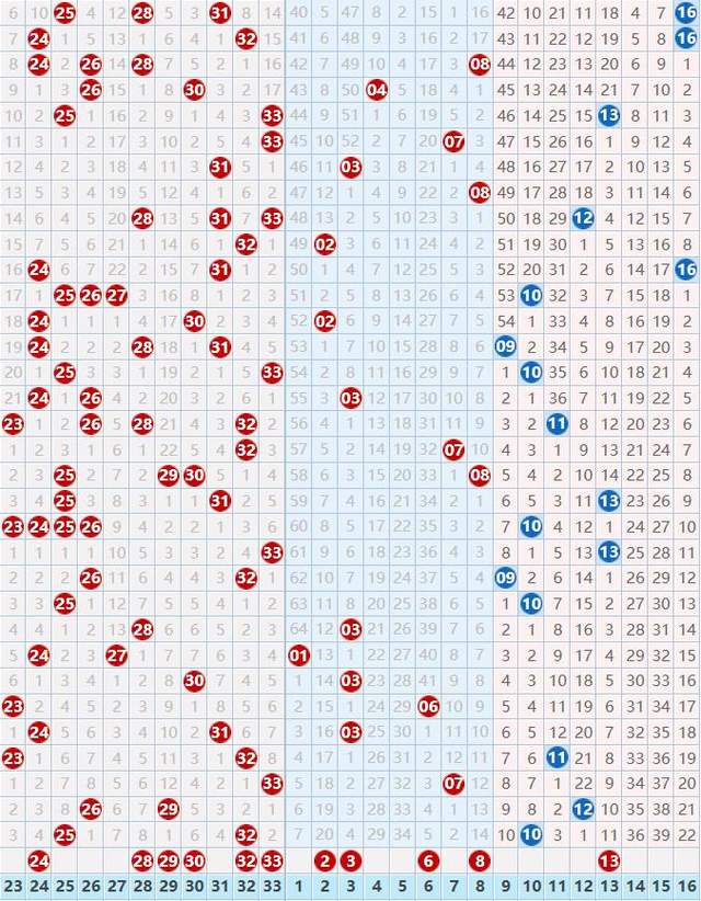 最近0369尾蓝球开的的确有点多,所以蓝球号码03和蓝球号码13还是有点不敢太重点,可是不关注没有办法。既然没有办法,我们再看看蓝球号码06行吗?也是0369尾蓝球。