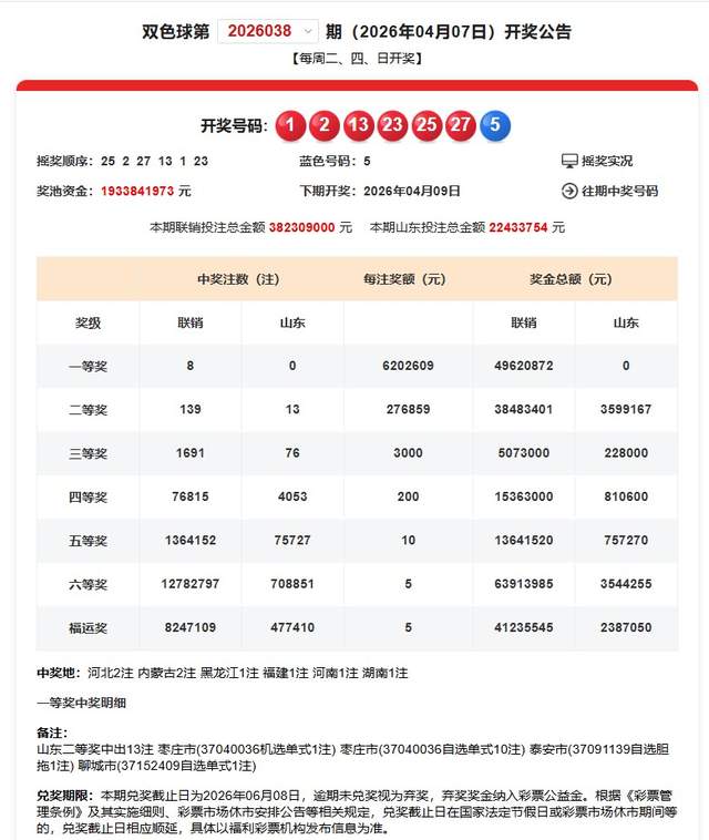 今天是2026年4月9日,星期四。今天是2026年第039期福彩双色球游戏开奖的日子。