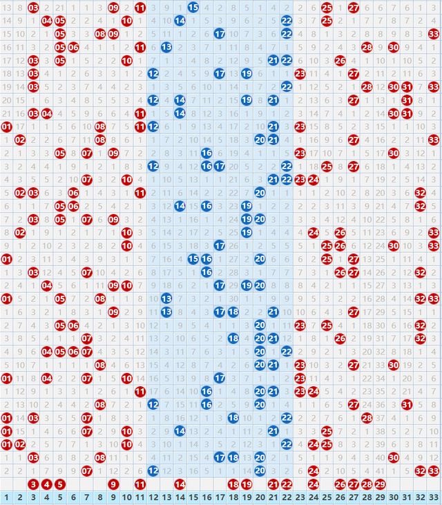 朋友们,到这里咱们的红球号码就分析完了,下面咱们再看看蓝球号码。