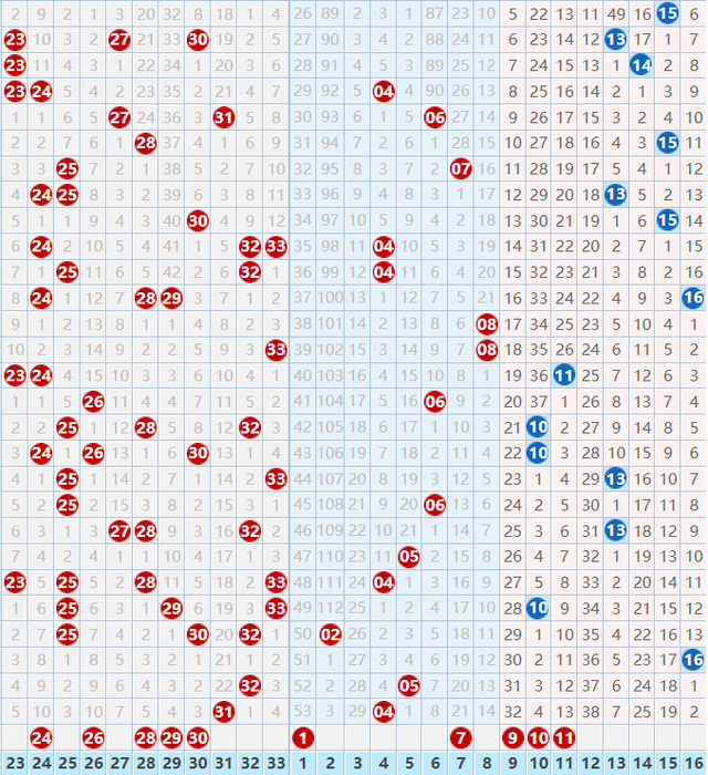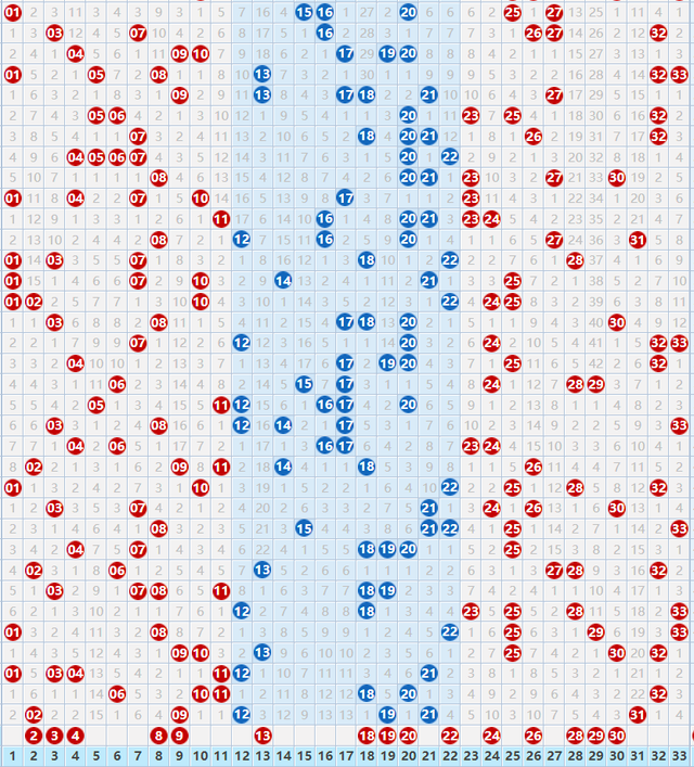 朋友们,到这里咱们的红球号码就分析完了,下面咱们再看看蓝球号码。