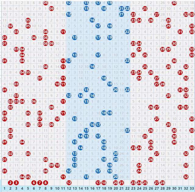 朋友们,到这里咱们的红球号码就分析完了,下面咱们再看看蓝球号码。