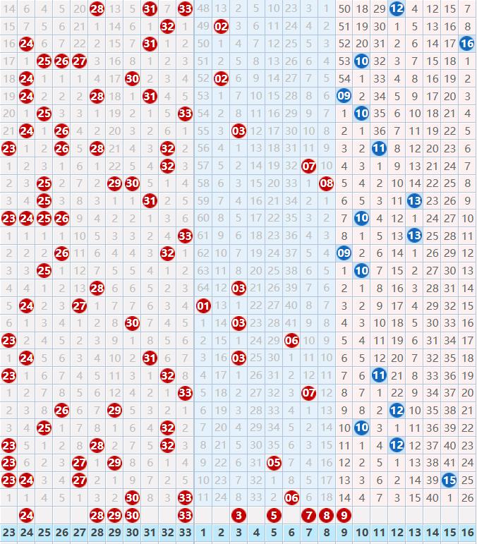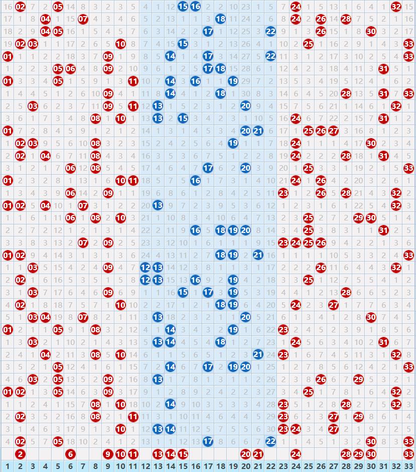朋友们,到这里咱们的红球号码就分析完了,下面咱们再看看蓝球号码。
