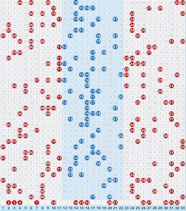 专业玩彩双色球红球: 龙头:02 03 04。 凤尾:30 31 32。 连号:02 03 04、14 15 16、26 27、30 31 32。 直落号:20 25。 隔期号:02 04 31。 邻码斜连码:07 16 21 26 32。 冷号:07 23 29。 专业玩彩双色球红球综合推荐: 双色球红球15码:02 03 07 07 09 10 14 15 16 20 21 26 27 30 31 32。 朋友们,到这里咱们的红球号码就分析完了,下面咱们再看看蓝球号码。